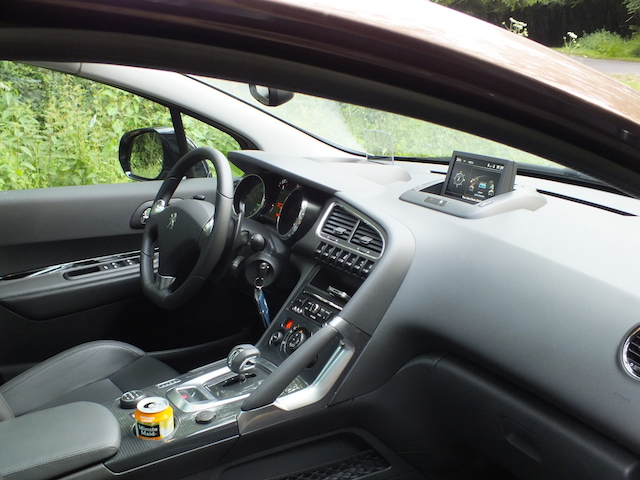 Si, par son esthétique, le 3008 me plait plutôt, mon premier contact avec lui est pourtant un peu décevant. Pourquoi me direz-vous? Réfléchissez une minute… Quel est votre tout premier contact avec un véhicule? Sa clé bien entendu! Alors je passe encore sur le fait qu’un véhicule “technologique” ait encore une clé métallique et non pas une commande mains libres comme une simple 108 peut l’avoir aujourd’hui. Mais cette clé… est affreuse. Rectangulaire, faite dans un plastique bas de gamme et en guise de logo un autocollant. Voilà qui dénote réellement! Heureusement, l’ouverture de la porte avant me fait vite oublier ce détail qui, à mes yeux tout du moins, est très important. Car le 3008 a inauguré de nouveaux standards en terme de qualité perçue chez Peugeot. En montant à bord, l’atmosphère se veut cossue. La planche de bord est massive, réalisé dans un plastique de belle qualité tandis que la console centrale se prolonge afin de ne former qu’un ensemble. On se trouve alors face au poste de conduite qui, entre la lame de rappel des informations de conduite et les boutons de commandes n’est pas sans rappeler un poste de pilotage d’avion. Réussi! L’ensemble est bien fini, les matériaux choisis avec soin : Ouf, ici, on respire la qualité!