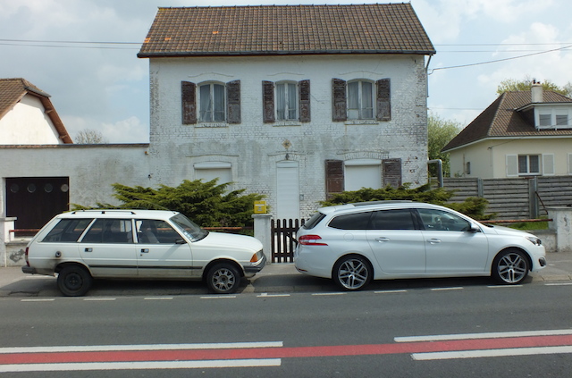 A l’arrière, Peugeot a étrangement mis de côté les feux avec trois griffes qui se déploient peu à peu sur toute la gamme pour des feux plus classiques très grands qui viennent mordre sur les flans du véhicule. Ces “gros” feux détonnent un peu avec les phares fins mais le hayon étant très épuré, ils sont là pour le “remplir” un peu. Ca n’est pas dénué d’élégance mais ça demeure très classique. Heureusement, la signature lumineuse à LED rehausse le tout quand la lumière s’assombrit. Pour le profil, chacun jugera. Personnellement, on voit de suite que Peugeot a voulu faire un break qui a du coffre avec un hayon droit et un long porte-à-faux. Ca casse un peu le profil dynamique de la voiture et la rend esthétiquement un peu pataude. Mais rassurez-vous : c’est beaucoup moins gênant dans la réalité que ne le laisse supposer des photos statiques du véhicule. Cette sensation de lourdeur est largement atténuée quand votre 308 SW se dote de jantes de 17 pouces ou les sublimes jantes Saphir 18 pouces de nos modèles d’essai, rendant l’allure globale très élégante. C’est moins esthétique avec des “petites” roues… L’ensemble n’est toutefois pas désagréable à défaut d’une ligne vraiment “dynamique” comme le revendique Peugeot. Pour cela, la ligne de la berline s’avère plus réussie. Et sur le segment des breaks compacts, une SEAT Leon SW se veut plus “suggestive”. Petit clin d’oeil à l’histoire, notre parcours nous a permis de croiser l’une des ancêtres de cette 308 SW, la 305 break. Appréciez comme les voitures ont évolué (et grandi!) en trente ans!