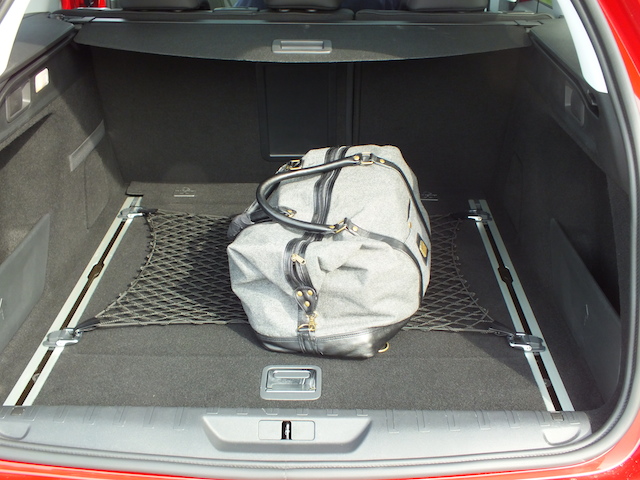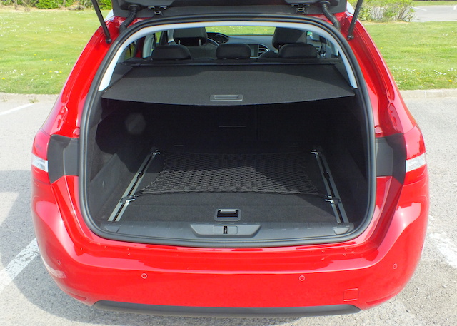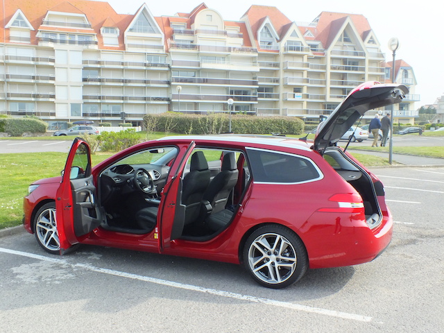Intéressons-nous plus en détail à l’arrière car c’est là que se trouve la nouveauté. Aux places arrières d’abord où l’empattement supérieur profite réellement à l’espace aux jambes. Deux adultes pourront s’y installer très confortablement tout en profitant d’un accoudoir au centre. Une place du milieu à réserver plutôt aux enfants. On apprécie aussi l’installation facilitée par des portes à large ouverture. Loin d’être un détail, c’est vraiment pratique lors qu’on monte ou descend. La mère de famille qui devra également installer son bébé sur un siège enfant validera également mon point! Bref, on se sent bien à bord de ce break qui respire à la qualité et offre beaucoup d’espace. Vos bagages ne seront pas en reste dans la soute -pardon, le coffre- qui accueille pas moins de 610 dm3! Le volume est entièrement exploitable car le dessin est carré et la 308 SW dissimule nombre de petits rangements dans le plancher de son coffre. Banquette rabattue en une manipulation grâce au système Magic Flat (il suffit de tirer une petite poignée sur le côté du coffre), vous disposez alors d’un volume géant de 1660 dm3! Voilà de quoi en mettre…On a d’ailleurs fait le test en s’entassant à pas moins de 9 dans ce coffre!