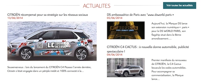 Site commercial avant tout, Citroen.fr met en avant la gamme et les services du constructeur mais n’en oublie pas de nous faire un peu rêver en nous parlant des actualités du moment…