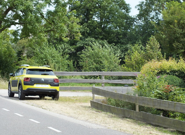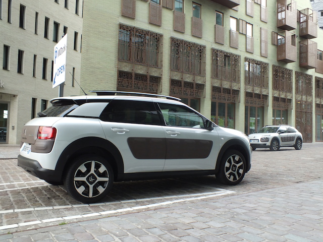 C’est d’ailleurs là qu’il donne un peu de voix et affiche cette sonorité rauque un brin sportive propre aux 3 cylindres comme on peut aussi l’entendre sur le 1.0 Ecoboost de Ford. Avec une Cactus affichant à peine 1 T sur la balance, cette motorisation s’en sort bien et la boite de vitesses –à seulement 5 rapports– est bien étagée. Sur la route, la tenue de route de la C4 Cactus est excellente avec un bon compromis entre confort et sécurité. On remarque seulement une prise de roulis assez importante dans les virages serrés. Rien de bien dramatique mais le Peugeot 2008 doté du même châssis semble mieux éduqué de ce point de vue. Mention spéciale également pour le freinage, efficace et endurant et qui vous permettra sans problème d’éviter les cyclistes qui déambulent dans tous les sens à Amsterdam! La motricité ne prête pas non plus le flanc à la critique même si, lorsqu’on sollicite une accélération franche, on ressent quelques à-coups dans la direction. Une direction par ailleurs plutôt souple et légère, idéale en manoeuvre. Bref, le bilan routier est bon avec cette motorisation 1.2 THP de 110 ch qui correspond bien au caractère doux et enjoué de cette C4 Cactus. Même le Start & Stop, disponible de série, se montre relativement discret et réactif. Un bon point quand on sait que Citroën a choisi de remplacer le coûteux système d’alterno-démarreur par un S&S plus classique.