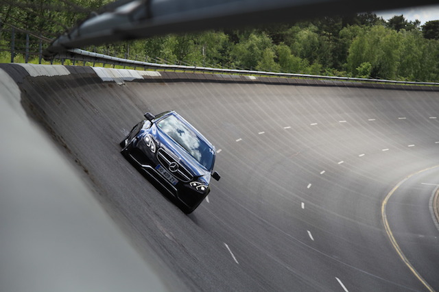 Et par n’importe lequel puisque c’est Jean-Christophe Boullion, qui a participé 14 fois aux 24h du Mans, qui nous y emmène. Désormais pilote pour Mercedes-AMG sur les événements du constructeur, il choisit de nous faire découvrir toutes les capacités d’une Classe E 63 AMG 4Matic. La classique berline familiale Classe E se métamorphose en sportive très efficace et c’est ainsi qu’il nous emmène à près de 300 km/h sur l’anneau de vitesse du CERAM.