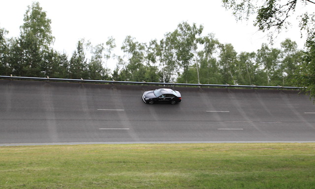 Mon second choix se porte sur le SLK 55 AMG. Ici aussi, les caractéristiques papier sont prometteuses : 421 ch et 0 à 100 en 4,6s. Découverte ici d’une conduite sportive différente, plus axée sur le pilotage car le SLK 55 AMG est une propulsion, contrairement au CLS qui se dote de 4 roues motrices. Toujours est-il qu’il se montre également très sécurisant. On ressent un sentiment de légèreté au volant du modèle qui, il est vrai, s’avère plus léger que le CLS de quelques centaines de kilos. La conduite est plus délicate et on apprécie de devoir se montrer plus précis pour réaliser les trajectoires. L’instructrice se fait aussi plus pressante car, le SLK étant une propulsion, il pardonnera moins facilement les erreurs de conduite. Il requiert donc plus de doigté et d’anticipation, y compris sur les réactions de la voiture. Pour le coup, le testant après le CLS, on ose moins le “pousser” et les tours s’enchainent donc –un peu– moins rapidement. Il se montre également très efficace même si, pour des raisons de sécurité, nous n’aurons pas pu le conduire en mode “cabriolet” comme il doit s’apprécier pleinement.