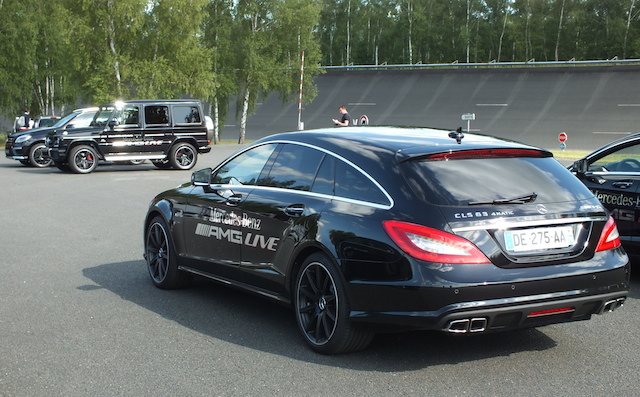 La voiture est agile, efficace et même… confortable! L’accélérateur répond à la moindre sollicitation et on reste impressionné par la tenue de route exemplaire y compris dans la montée du circuit qui enchaine ensuite une petite bosse qui nous fait presque décoller! Difficile à décrire mais la sensation de conduite est exaltante tandis qu’à aucun moment, on ne craint pour sa sécurité. On apprécie aussi les conseils de l’instructeur qui nous pousse gentiment au vice pour nous faire exploiter pleinement les capacités de la voiture. Las… les tours s’enchainent vite, trop vite et il est temps de tester un autre véhicule. Mais, assurément, ce CLS Shootking Brake 63 AMG sera mon coup de coeur de cette journée! On descend de la voiture avec l’envie de vite repartir enchainer les tours et le sourire ne se décroche plus des lèvres… ce que constate d’ailleurs l’auditoire avec amusement!